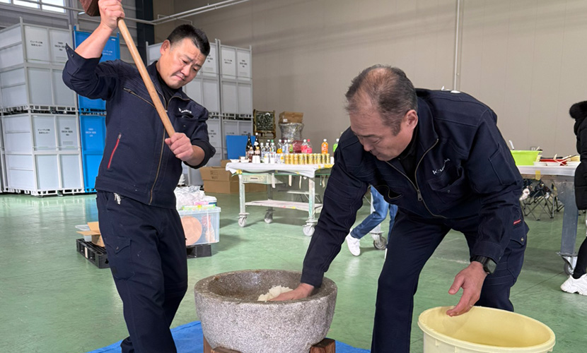 2025年の年末も、総勢90名の参加があり、社員やご家族とともに楽しい餅つき大会を開催しました。